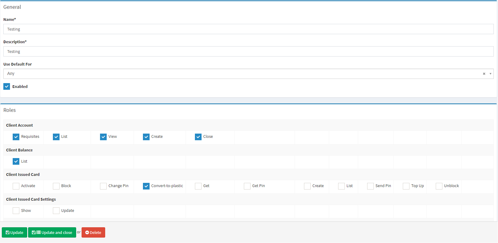 If the None option is selected, the role will not be applied automatically—manual assignment will be required.Disable the Enabled checkbox if you want to activate the access role later.