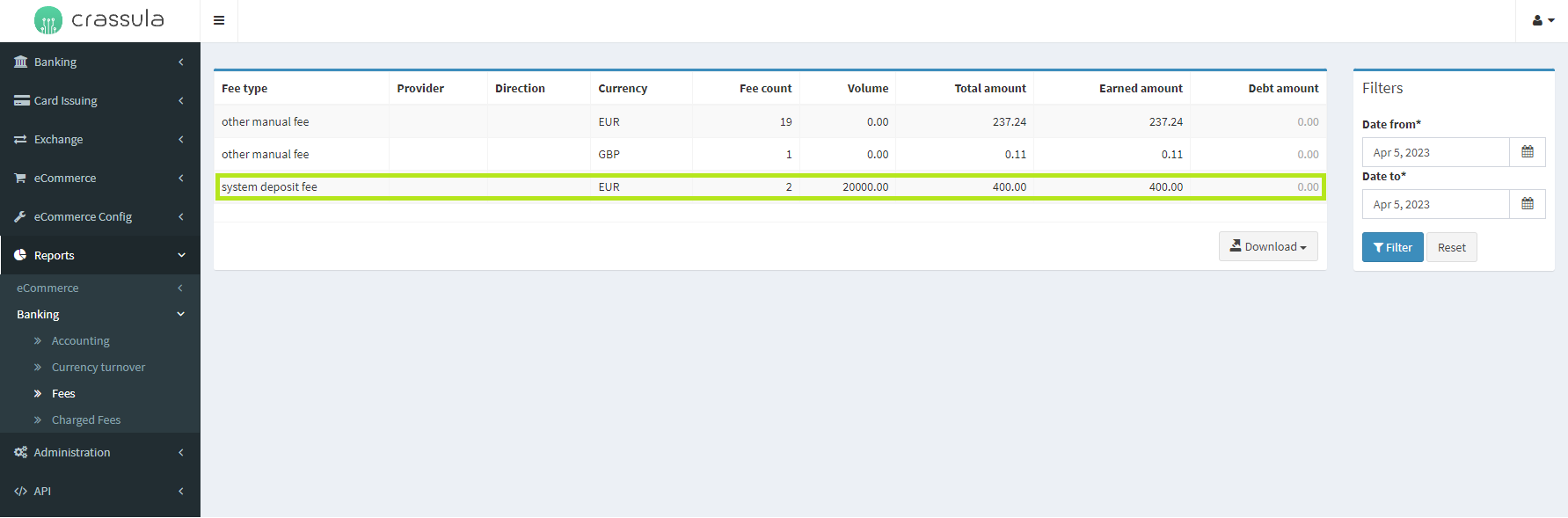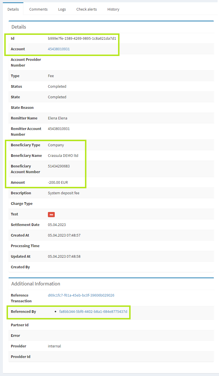 A reference transaction is created to represent an incoming fee transaction to the White label technical account. The reference transaction is available in the list of transactions of the technical account.