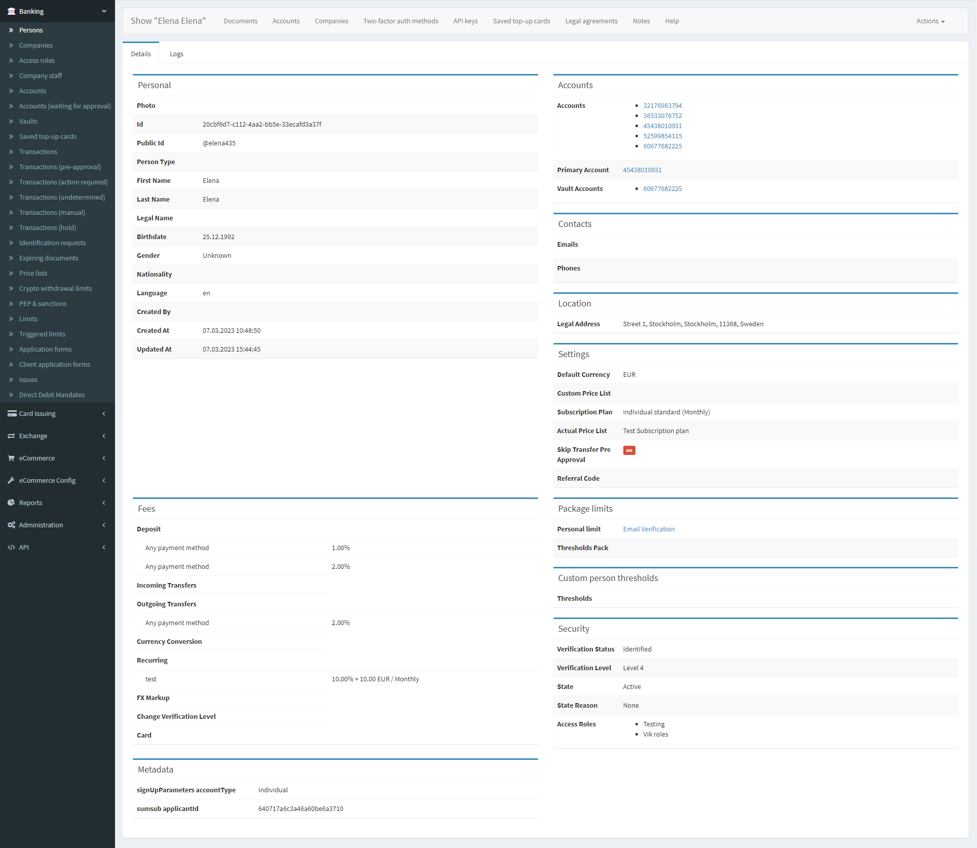 All banking solutions are provided to clients via the Client Interface. Once a client is registered, they can use their private credentials to access their accounts. Client credentials are not visible to White Label administrators. See the following images for implementation examples.