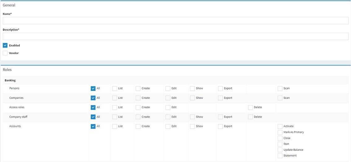 Banking tab refers to core banking system management (see Getting started - Banking Administrative Panel for more information).
