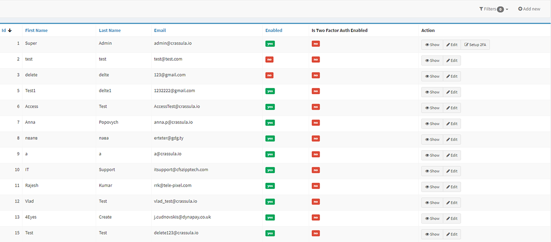 Crassula administrative panel provides various ways to manage a client base including private persons and companies registration, identification, accounts opening, and transactions overview.
