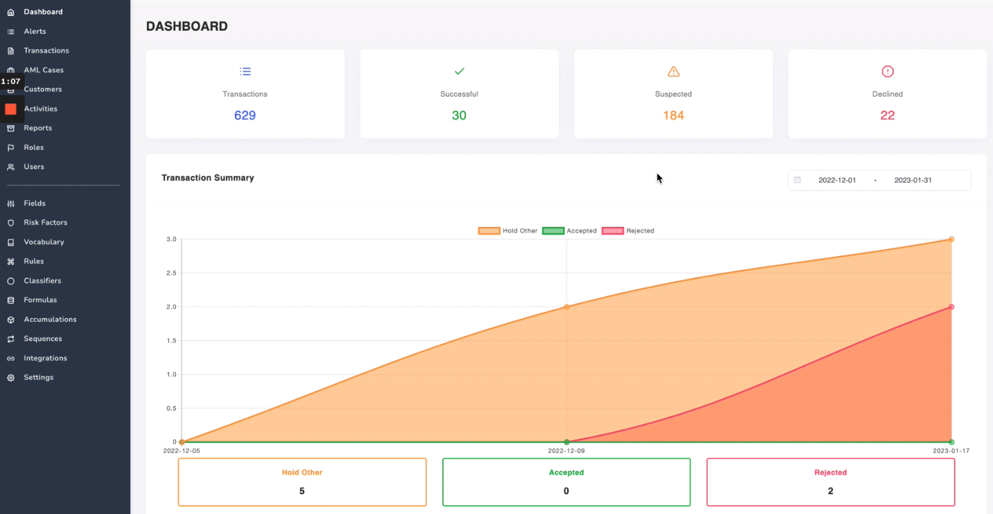 Payall's dashboard provides extensive configuration options to customize the verification process, create verification rules, and monitor screening results. Here you can also specify transaction types and payment fields to be processed.