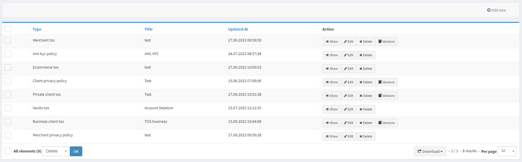 Click Add new to create a document.