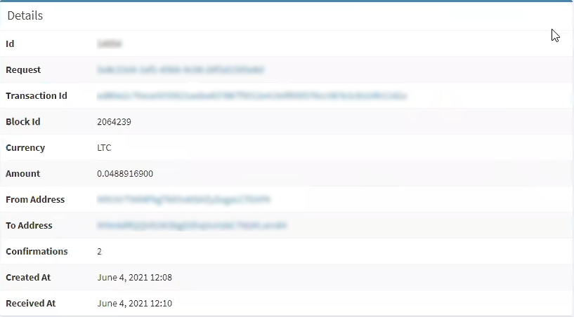 Block Id | The transaction block identification number; all transactions are grouped in blocks when received for better navigation and security. |