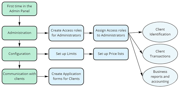 Administration issues - any Banking service requires a team of Administrators to operate backend processes. Most of the operations, including Client registration, card issuing, and financial monitoring are executed by service providers; though some operations require internal assistance:
