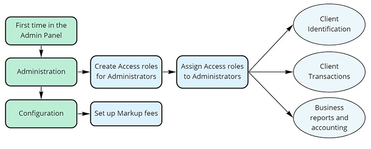 Creating Administration roles - create access roles to the Administrative panel to delegate authority to your teammates. See Getting started - Administrative panel overview for details.