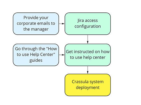 Jira access configuration - you will have your Jira accounts created by our support team. Jire is used as the most effective communication instrument in Crassula.