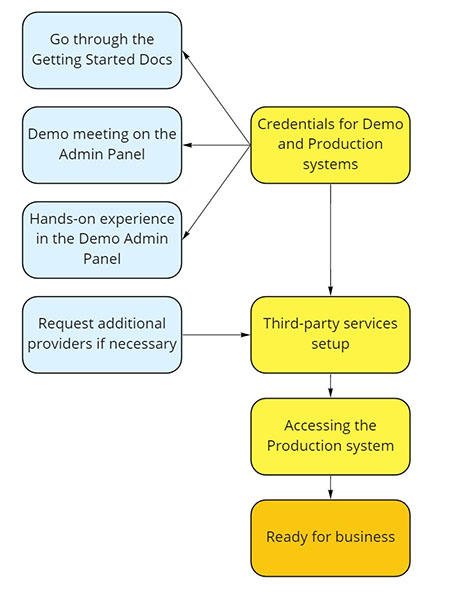 Credentials for Demo and Production systems - once the system is set up, your manager will provide you with Demo and Production credentials. Before the next step is implemented, ensure the fulfillment of the following: